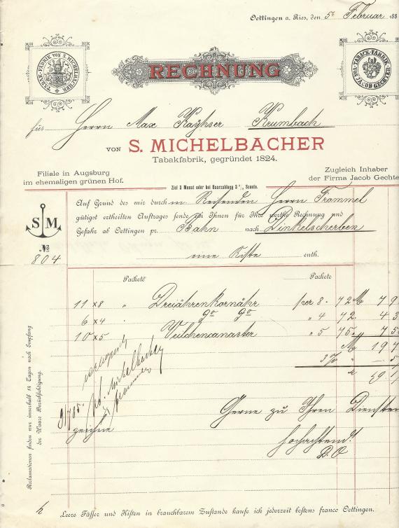 Rechnung der Tabakfabrik S. Michelbacher