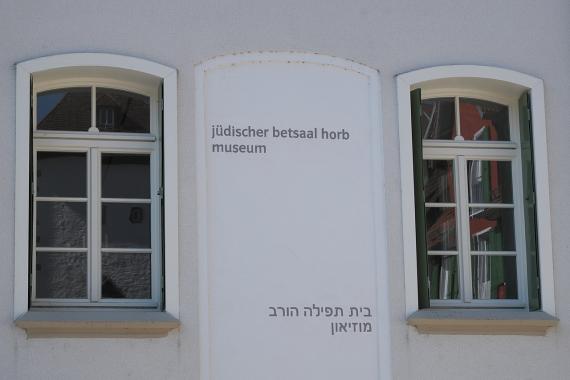 Die Tafel auf dem Bild gibt zu erkennen, dass es sich um den jüdischen Betsaal in der Stadt Horb handelt.
