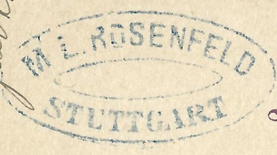 Postkarte geschäftlicher Art von M. L. Rosenfeld, - versandt am 5. April 1889 - Ausschnittvergrößerung Firmenstempel