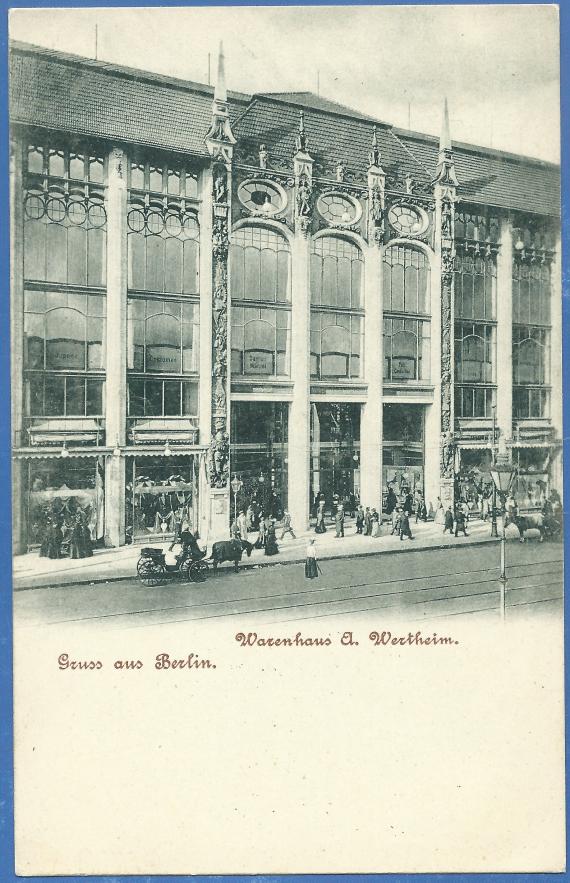 <p>Die Ursprünge des Kaufhaus-Konzerns der Familie Wertheim gehen zurück ins Jahr 1852 in Stralsund. Damals eröffneten die Brüder Abraham und Theodor Wertheim in der Stralsunder Wasserstraße ihr „Manufactur-Modewarengeschäft“. 1875 entstand das erste Wertheim-Kaufhaus. Ursprung und Stammhaus des späteren Kaufhaus-Konzerns war ein kleines Kurzwaren-Geschäft, ein Eckladen in der Mönch/Mühlenstraße in Stralsund, gegründet von Abraham und Ida Wertheim, geb. Wolff. Der Einstieg der Söhne Georg und Hugo 1876 in das Geschäft brachte eine Erweiterung der Produktpalette und einige weitreichende Neuerungen, wie das Umtauschrecht, die Möglichkeit, die Waren vor dem Kauf ausgiebig zu betrachten und einheitliche Preise für alle Gesellschaftsschichten mit sich.1879 wurden erstmals Angestellte beschäftigt, 1880 folgte die Verlegung des Geschäfts in größere Räume.1884 war die Eröffnung der ersten Filiale in Rostock und bereits 1885 folgte die Eröffnung der ersten Filiale des Manufakturwarengeschäfts durch Georg Wertheim zusammen mit seinen Brüdern Franz, Wilhelm und Wolf Wertheim in Berlin. 1894 wurde schließlich das erste Warenhaus mit frei ausgelegter Ware und festen Preisen in der Kreuzberger Oranienstraße eröffnet. Es war das erste Berliner Wertheim-Warenhaus. Es folgten weitere Warenhäuser am Moritzplatz und an der Königstraße.1897 dann die Einweihung des später bekannten Gebäudekomplexes des Warenhauses Wertheim in der Leipziger Straße, der im Laufe der Jahre bis zum Leipziger Platz ausgebaut wurde und mit einer Nutzfläche von 106.000 m² seinerzeit das größte Warenhaus Europas war. 1905 eröffnete an der Rosenthaler Straße 27 in Berlin-Mitte ein weiteres Wertheim-Warenhaus. Der Machtergreifung der Nationalsozialisten folgten die ersten Boykotte jüdischer Geschäfte. Selbst die Übertragung des gesamten Vermögens auf seine nichtjüdische Frau konnte nicht verhindern, dass das Wertheim-Unternehmen 1938 arisiert und die Wertheim-Familie enteignet wurde.</p>