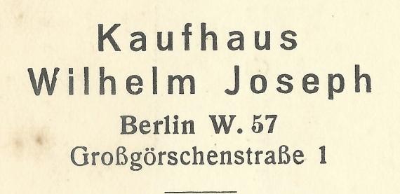 Geschäftspostkarte " Kaufhaus Wilhelm Joseph ", Großgörschenstraße 1 in Berlin, - versandt am 25. Oktober 1928 - Ausschnittvergrößerung Firmenadresse