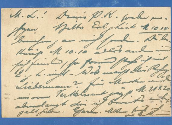 Im Stadtadressbuch München von 1920 findet sich folgender Eintrag - Bühler Samuel, Kaufmann, Landwehrstraße 67. Samuel Bühler, geboren am 8. Februar 1863 in Kleinerdlingen bei Nördlingen heiratete im Dezember 1891 in Göppingen Rosa Heumann. Im Januar 1892 zog des frisch vermählte Ehepaar nach München. Am 23. Dezember 1892 bekam das Paar eine Tochter - Franziska. Doch bereits am 12. Januar 1893 verstarb die kleine Franziska Bühler. Am 10.April 1895 erblickte Sohn Justin das Licht der Welt. doch auch er muß noch sehr jung wieder verstorben sein. Die weitere Ehe blieb kinderlos. Samuel Bühler war als Kaufmann tätig. Laut Eintrag in genealogischen Seiten war Samuel Bühler in Dachau. Er starb am 26. November 1935. Auf der genealogischen Seite wird als Todesursache " Genozid " angegeben - von den Nazi´s ermordet. Im Sommer 1936 zog die Wittwe Rosa Bühler zurück in ihren Geburtsort Göppingen. Am 22. August 1942 wird Rosa Bühler von Stuttgart nach Theresienstadt deportiert. Am 29. September 1942 erfolgte der Weitertransport nach Treblinka in den Tod. Der Empfänger der Karte der der Schwager von Samuel Bühler, der Bruder seiner Frau Rosa,geb. Heumann. Hugo Heumann war der Geschäftsinhaber von „Hugo Heumann" - Handel mit Weberei-Abfällen, später „En gros Geschäft in Baumwollwaren".