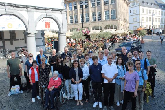 <p>Nachdem die Stadt Paderborn Ende der 1990er-Jahre an diversen denkmalgeschützten Gebäuden Schrifttafeln aus Plexiglas mit Informationen zur Geschichte der Gebäude hatte anbringen lassen, initiierte die GCJZ 2001 eine solche Tafel für das ehemalige Kaufhaus Steinberg & Grünebaum, Rathausplatz 7. Nach Ausgrenzungserfahrungen in der Stadt, Ludwig Grünebaum’s Inhaftierung im KZ Buchenwald und der Zwangsenteignung ihres Geschäftes konnten die Mitglieder der Familie zwischen 1937 und 1939 noch rechtzeitig vor einer Deportation durch die Nationalsozialisten in die USA flüchten. </p><p>Nachdem die VerbundVolksbank OWL das ehemalige Kaufhaus Steinberg & Grünebaum am Rathausplatz von der Erbengemeinschaft Pötz, die es in der NS-Zeit durch die Enteignung des Besitzes von Juden erworben hatte, gekauft hat, wurde im Sommer 2024 mit Unterstützung des Stadt- und Kreisarchivs in einer Ausstellung die wechselvolle Geschichte des Hauses Grünebaum gezeigt. Zudem wurde die an der Frontseite des ehemaligen Kaufhauses bisher kaum sichtbare Schrifttafel aus Plexiglas durch eine Plakette (Bild) mit neuem Text an anderer Stelle am Gebäude angebracht. Zur Ausstellungseröffnung reisten 30 Nachkommen aus vier Generationen Familie Grünebaum aus den USA, Israel und Deutschland nach Paderborn.</p>