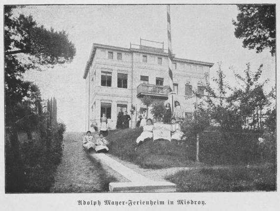 <p>Ferienheim des Vereins "Ferienkolonien für jüdische Kinder", benannt nach dessen langjährigem Vorsitzenden Adolph Mayer. Ab 1908 waren bis zu 100 Berliner Kinder für die Sommerfrische hier untergebracht. Das Haus lag etwas abseits vom eigentlichen Badeleben auf einer Anhöhe, unweit der See, in unmittelbarer Nähe des Waldes. Neben der frischen Seeluft gehörten Ausflüge nach Heringsdorf, Swinemünde oder Rügen zum Ferien-Programm. Eine kleine Bibliothek mit Lese- und Liederbüchern sorgte auch an Regentagen für Beschäftigung. Am Strand und im Wald konnten sich die Kinder unbeschwert erholen.</p><p>1935 mussten die Kinder und ihre Betreuer fliehen: „Misdroy soll judenfrei werden – Demonstration der Bevölkerung und Badegäste – Abreise der Juden“, titelte die Pommersche Zeitung am 25. Juli 1935. Eine empörte Volksmenge zog unter dem Absingen antisemitischer Lieder durch die Stadt, trug Transparente mit der Aufschrift „Juden! Wir geben euch noch 24 Stunden Zeit!“ und brachte an Pensionen mit jüdischen Gästen Schilder an, auf denen stand: „Hier wohnt ein Verräter unserer Weltanschauung.“ Dann ging es auch vor das jüdische Kinderheim – angeblich „diszipliniert und anständig“, so der Autor. Die Leiter des Adolph Mayer-Heims mussten erklären, das Haus am nächsten Tag zu räumen.</p>