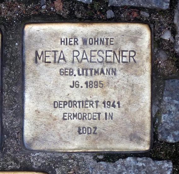 Stumbling stone for Meta Raesener in front of the house at Große Hamburger Straße 30 in Berlin-Mitte