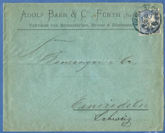 Business envelope of " Adolf Baer & Co, Fabriken für Bronzefarben,Brocat & Blattmetall " - mailed March 13, 1903 - detail enlargement company name