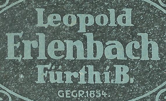 Leopold Erlenbach was born in Fürth on November 13, 1831. His parents were Seligmann Ellern-Erlenbach and Marianne Ellern-Erlenbach,née Baburger. Leopold Erlenbach learned gold beating, became a master gold beater and founded his own company in 1854. In 1928, the Leopold Erlenbach company was granted a patent for the production of especially durable gold leaf made of a platinum-gold alloy. In 1927, Ella Erlenbach was the owner of the Leopold Erlenbach company. However, she was also a partner in the Schienerer gold leaf factory, which supplied her with raw gold and sold the gold leaf back abroad, mainly to England.
