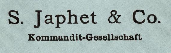 In the Berlin address book edition 1923 the following entry can be found: Japhet & Co.,Kommandit-Gesellschaft Nachf., S.,W56, Markgrafenstr.56a. T. - Saemy Japhet was born in Frankfurt am Main. At the age of 15 he received an apprenticeship as a banker at a German bank. After a few years in London, he founded the S. Japhet & Company banking house. Saemy Japhet was a famous banker and philanthropist. He contributed to a number of Jewish causes and took a keen interest in the development of Palestine, although he never identified with the Zionist organization. Saemy Japhet died in London at the age of 95.