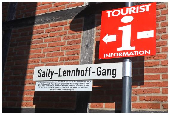 The Jewish merchant and trained master tailor Simon (called Sally) Lennhoff (1871–1943) was posthumously honored on October 22, 1987. A 32-metre-long pedestrian passageway from Marktstrasse 8 to the parking lot of the Soltau City Service Centre has borne his name ever since - the Sally Lennhoff Walkway.