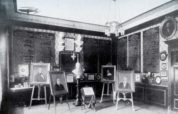 Memorial hall in the Jewish orphanage at the corner of Leostraße 3 and Husener Straße with the names of the "Jahreszeiten-Stifter", the deceased for whom the annual Kaddish prayer was said. Photos from the "Festschrift zur fünfzigjährigen Stiftungs-Feier der jüdischen Waisen-Erziehungs-Anstalt für Westfalen und Rheinland zu Paderborn, 1856-1906. Cassel 1906"