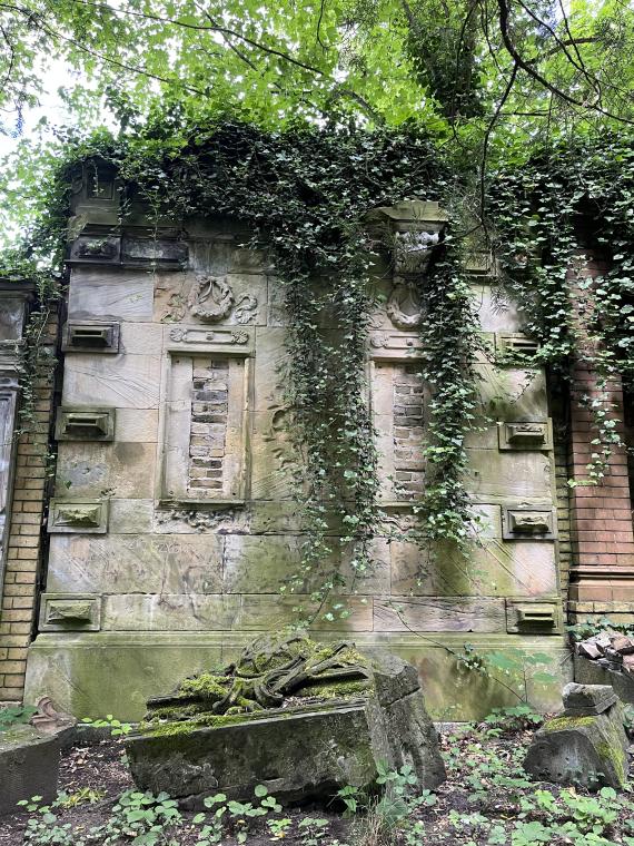 The cemetery survived the Second World War almost unscathed. Destruction and vandalism began in 1945 and continue to this day (graffiti). The mourning halls became car repair shops that encircle the well-preserved administration building at the entrance. Ten upright stones, 36 horizontal stones, the broken pieces of 36 others and the frames of 92 gravestones have been preserved. The cemetery has been a protected cultural monument since 2006 and the grounds are maintained.