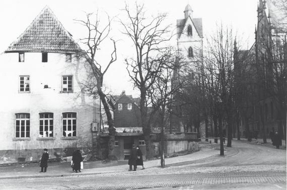 im Hintergrund die Busdorfkirche, rechts das St. Vincenz-Krankenhaus